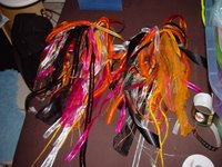| Two short tied together w/ Red/Black/Silver | Two short w/ Orange/Pink/Silver/Black | One short w/ Green/Blues |